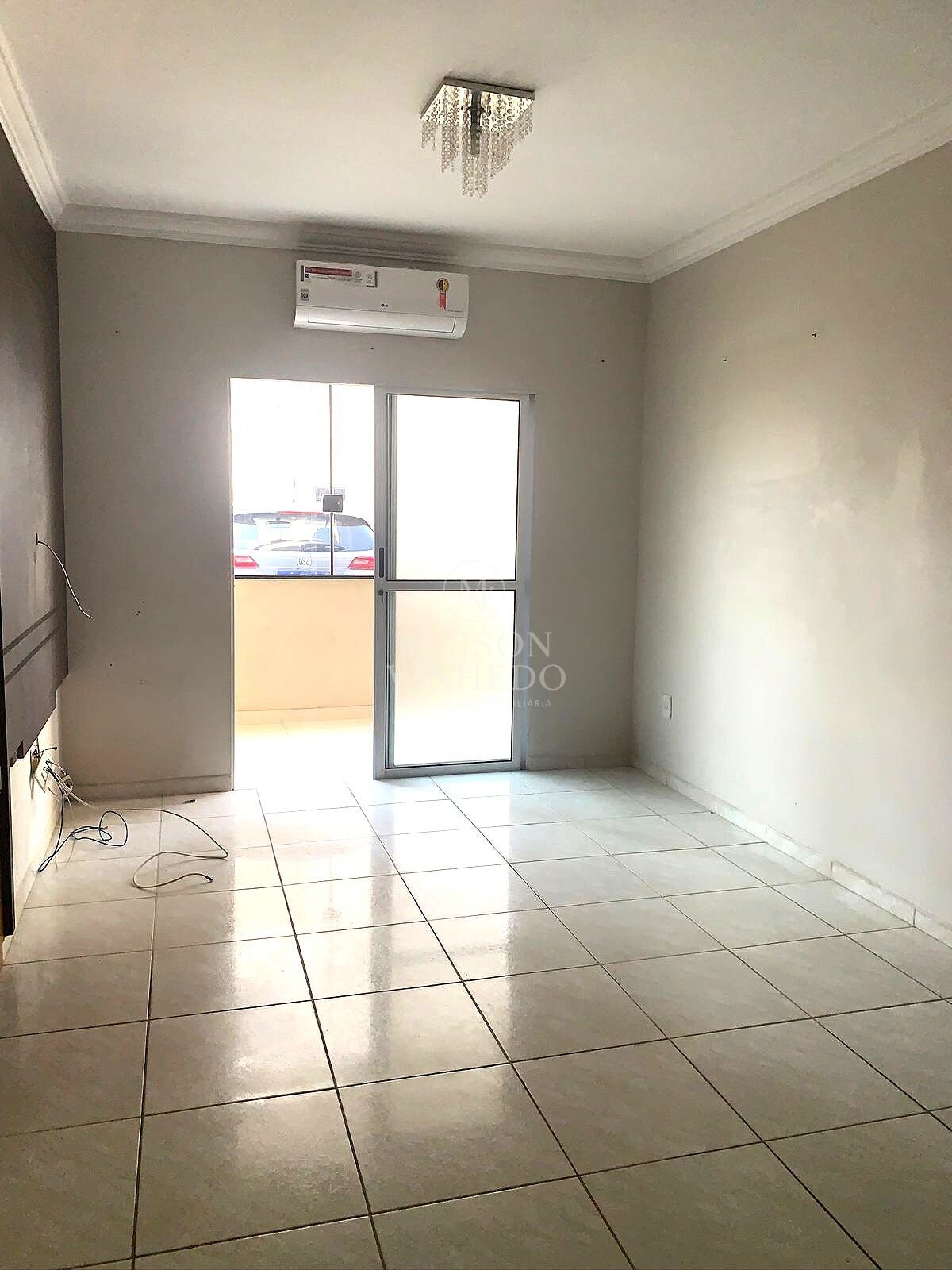 Apartamento térreo com varanda, cozinha planejada já com forno e fogão, quartos e banheiros com armários. Sala com ar condicionado já instalado.