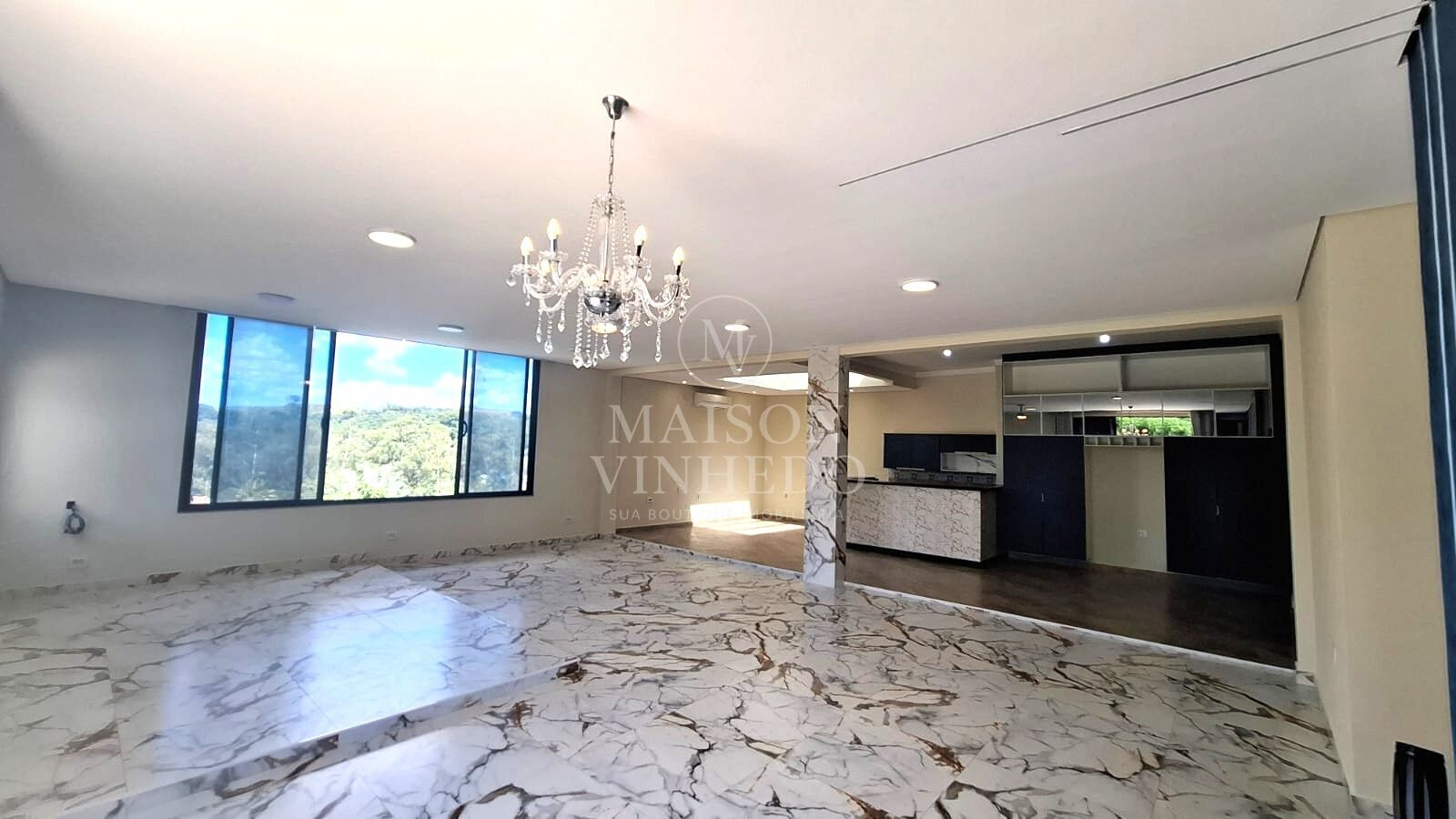 Concebida para proporcionar liberdade e bem-estar, a residência impressiona logo na área social. O pé-direito elevado, com aproximadamente 4 metros, amplia a sensação de espaço e integra sala e cozinha de forma elegante e fluida. Grandes aberturas emolduram a vista permanente para a mata e para a área de lazer, trazendo luminosidade natural abundante e criando um cenário acolhedor para o dia a dia.