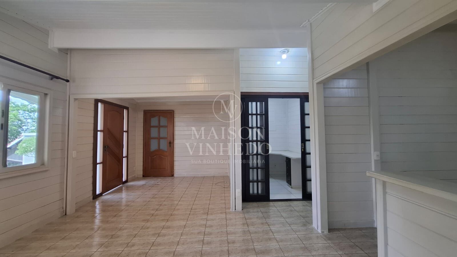 Sobre a edícula, um ambiente envidraçado — que pode funcionar como salão de jogos ou escritório — amplia ainda mais as possibilidades de uso. O imóvel conta também com canil.