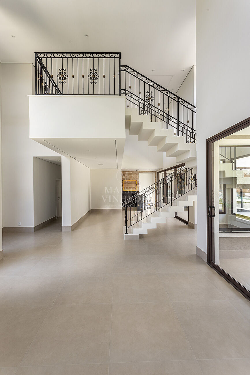 Logo na entrada, o pé-direito duplo valoriza a iluminação natural e revela um interior elegante e imponente. No pavimento térreo, a versatilidade é destaque: escritório privativo que pode ser convertido em quarta suíte, além de infraestrutura pronta para instalação de elevador — diferencial que amplia acessibilidade e valorização futura.