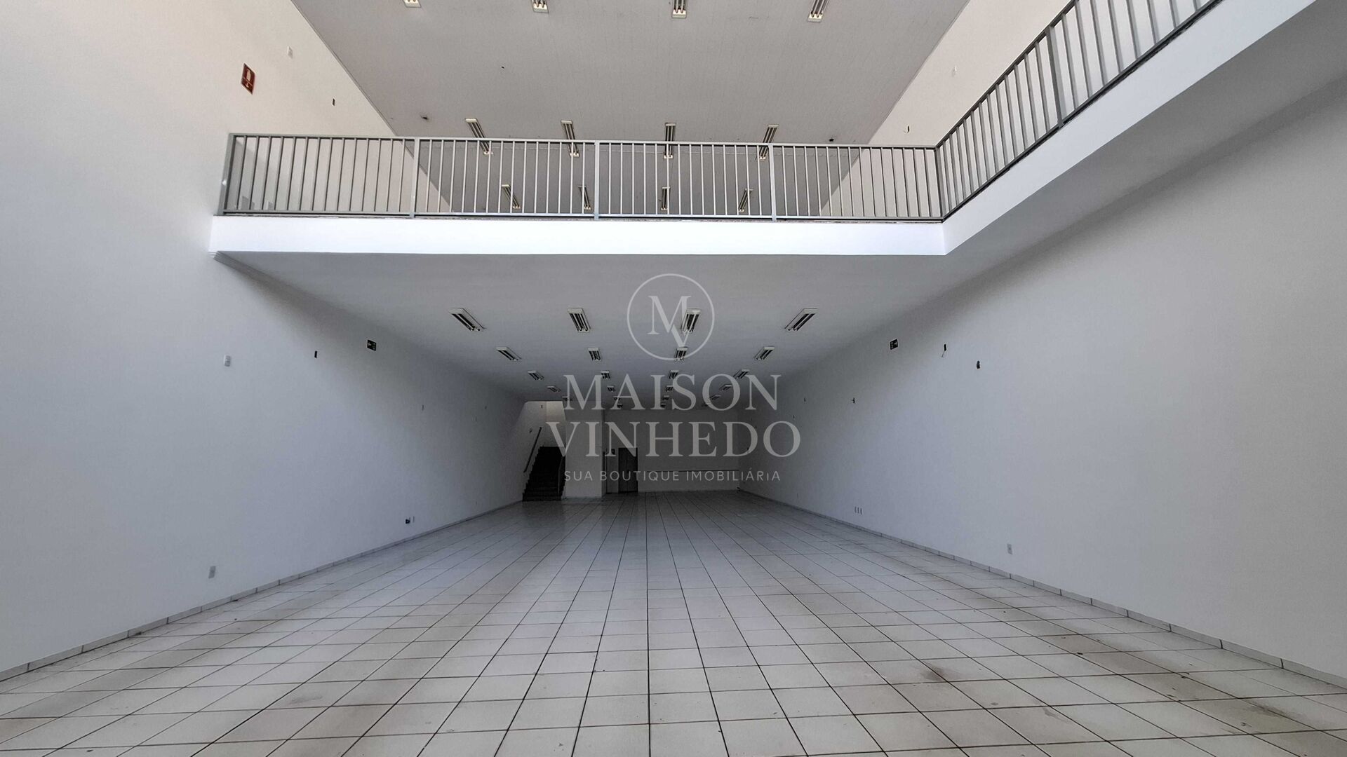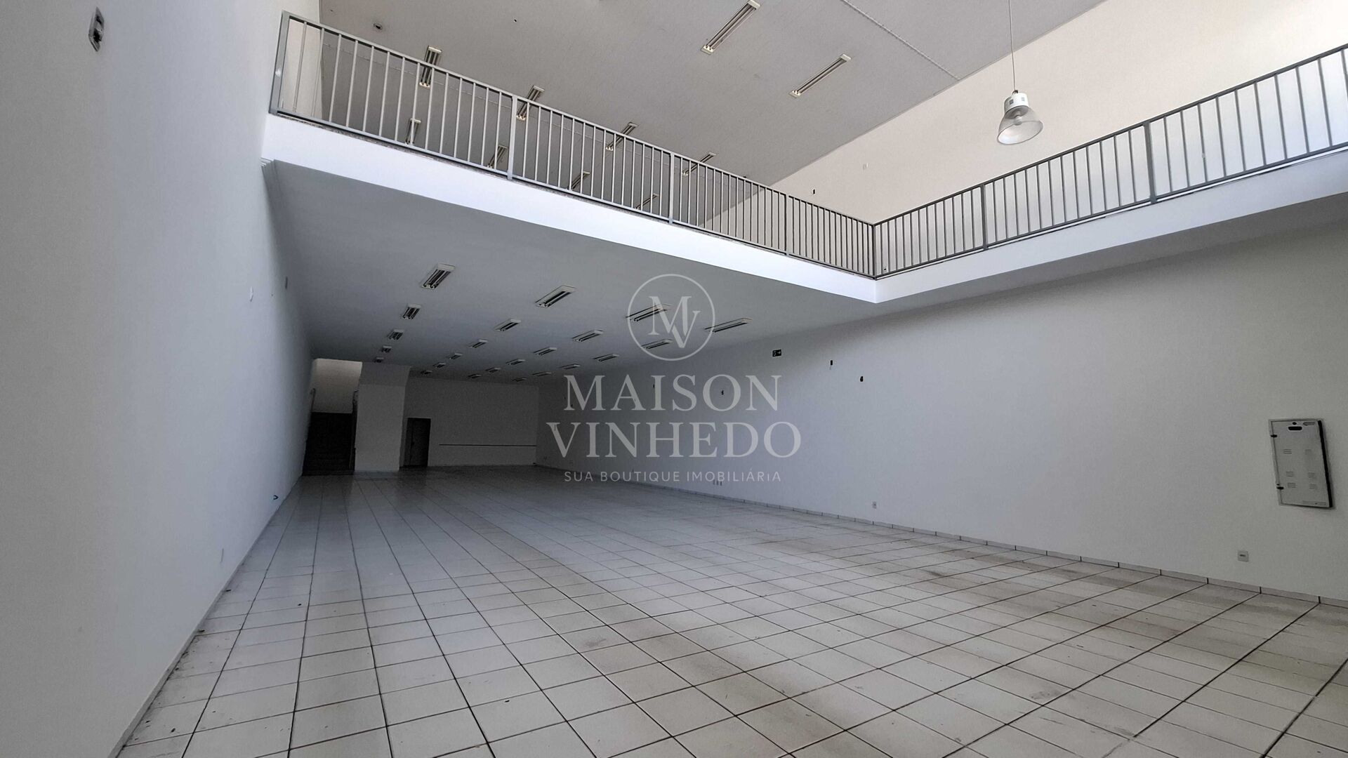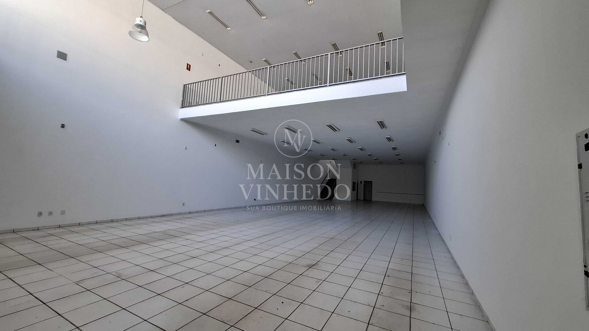 No piso superior, o imóvel conta com um mezanino também em vão livre com cerca de 220 m², ampliando as possibilidades de uso e proporcionando excelente integração entre os ambientes. Essa configuração favorece operações que necessitam de áreas generosas para circulação, exposição ou atendimento.